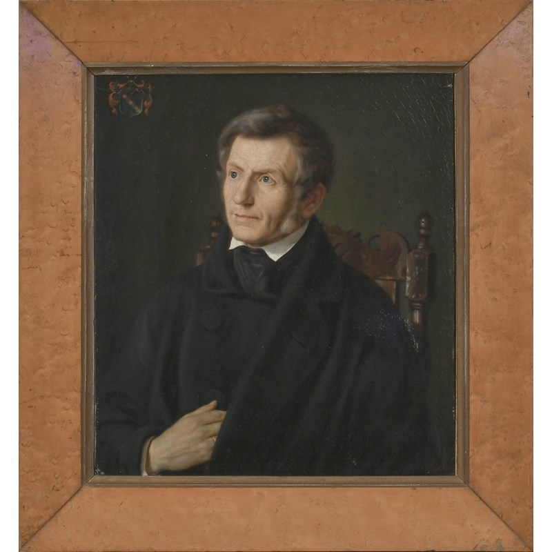 Portrait of a gentleman, half-length, wearing a black coat and seated in a chair