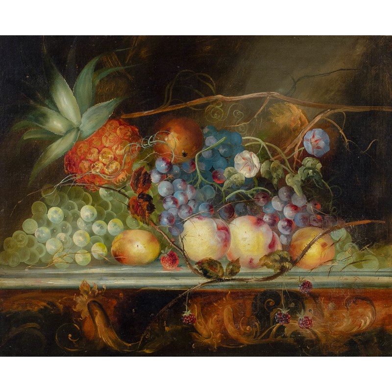 Still life of fruit upon a marble ledge