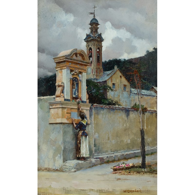 Signed W. Logsdail (lower right), and further signed and inscribed A Wayside Shrine/at Final Marina/William Logsdail (to label)