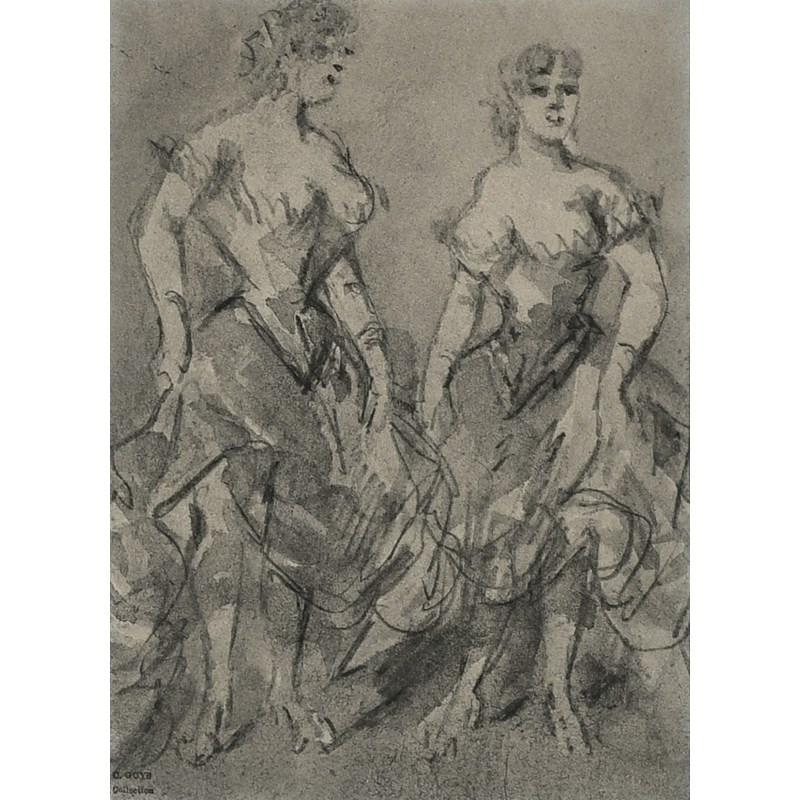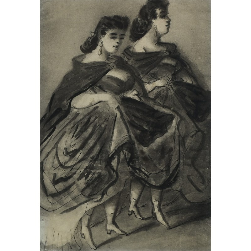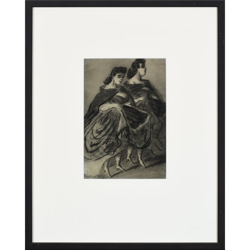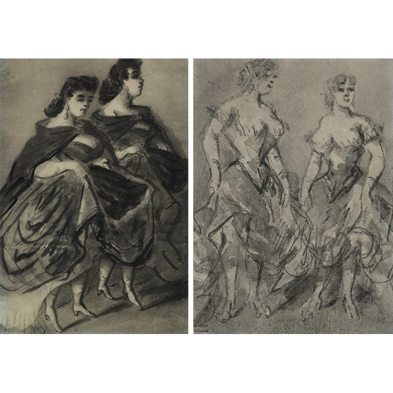 Study of two ladies wearing cloaks; Study of two ladies in evening dress