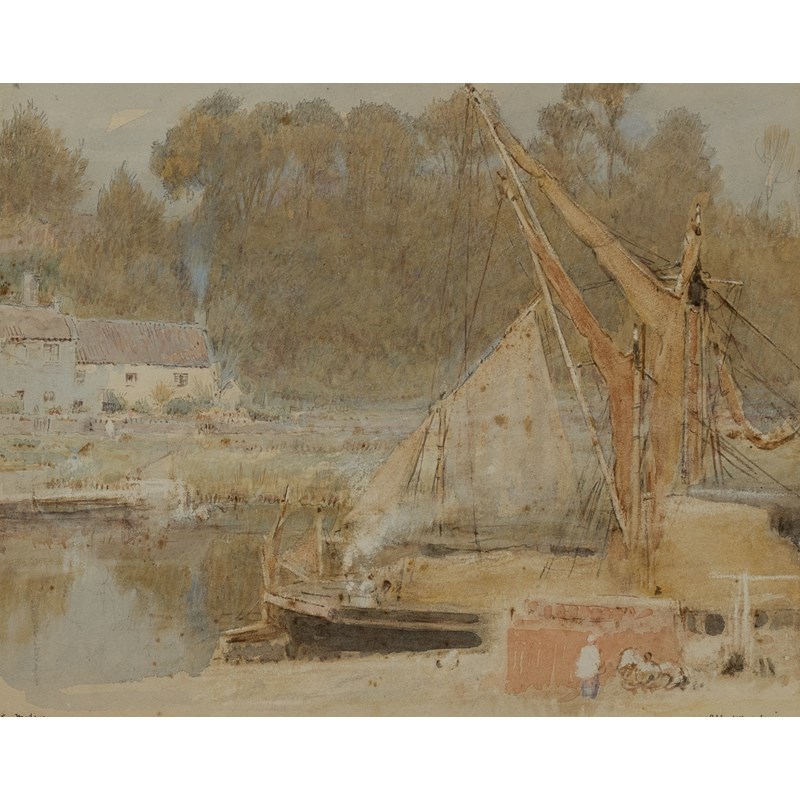 Signed Albert Goodwin (lower right) and inscribed On the Medway (lower left)
