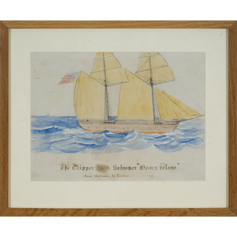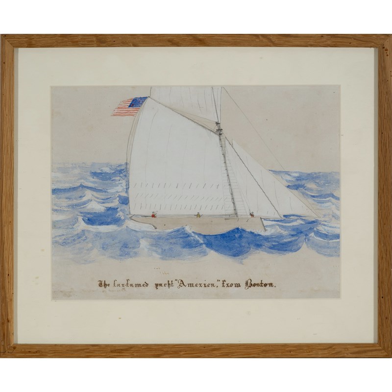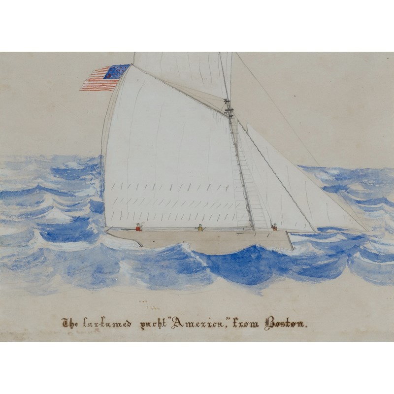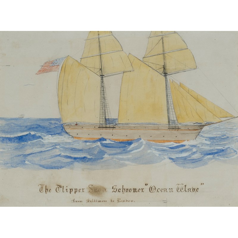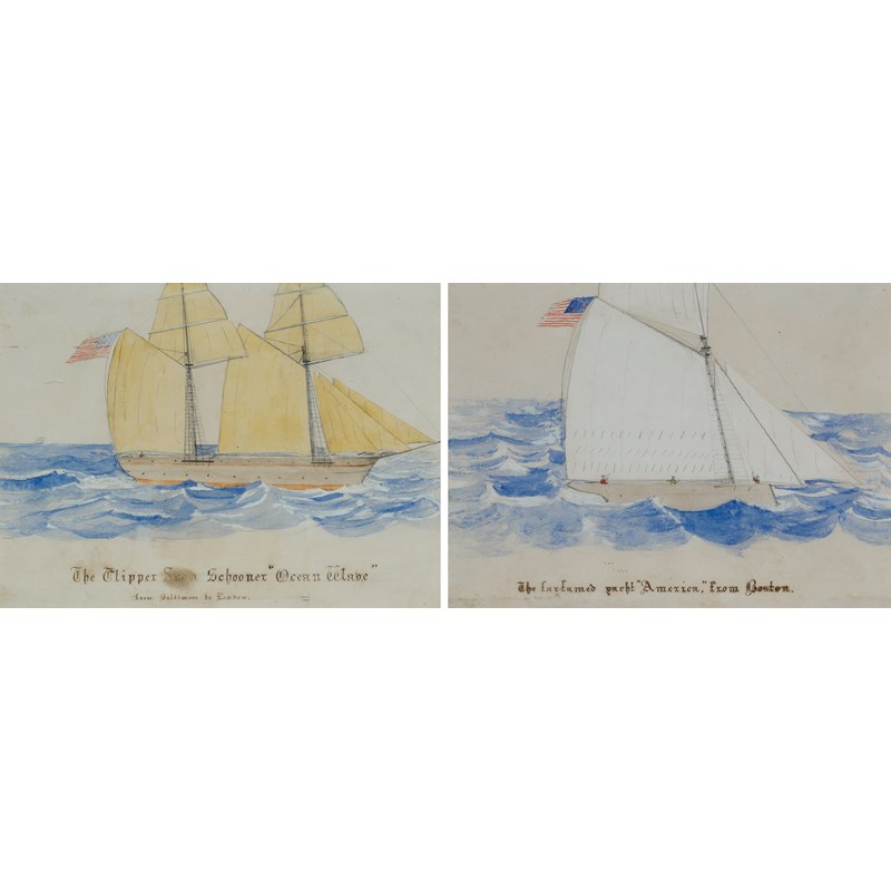 A pair, the former inscribed The Clipper Scow Schooner "Ocean Wave"/from Baltimore to London (lower centre); the latter inscribed The far-famed yacht "America", from Boston (lower centre)