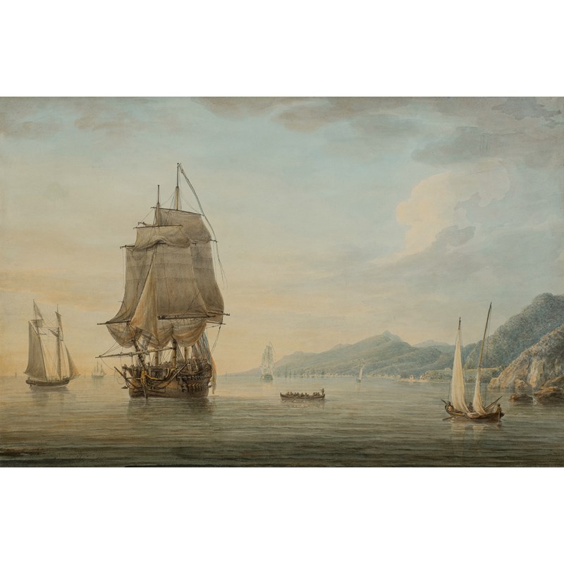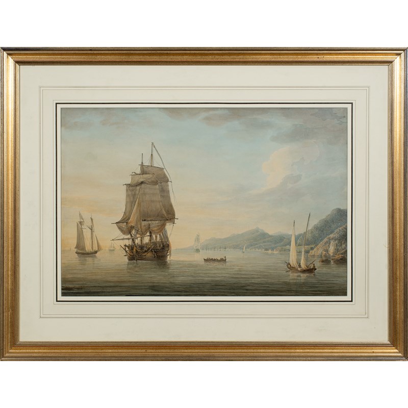 A Royal Navy frigate of 44-guns getting underway off Port Royal, Jamaica