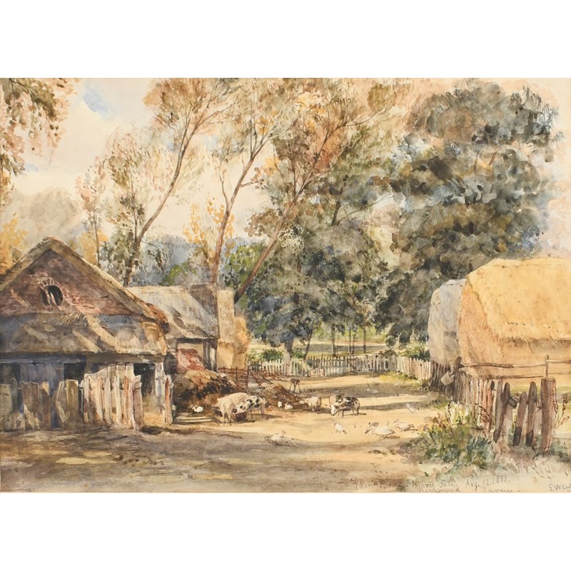 Signed, dated and inscribed Akers Farm, Marsh Gate/Richmond/Avg. 12. 1833/Surrey/E W Cooke (lower right)