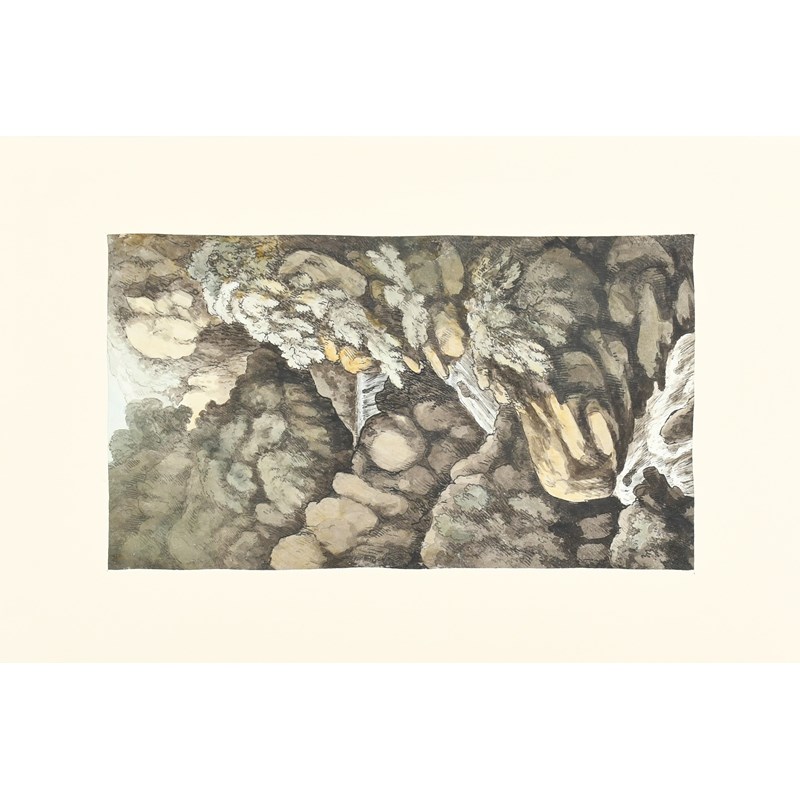 Riders outside the Castle of Udolpho (recto); Study of a cascade (verso)