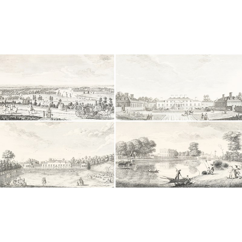 A View from Richmond Hill up the River; A Front View of the Earl of Harrington's House at Petersham in Surry; A View of the Earl of Harrington's House towards the Garden at Petersham in Surry; The House of Moses Hart Esq between Twickenham & Isleworth