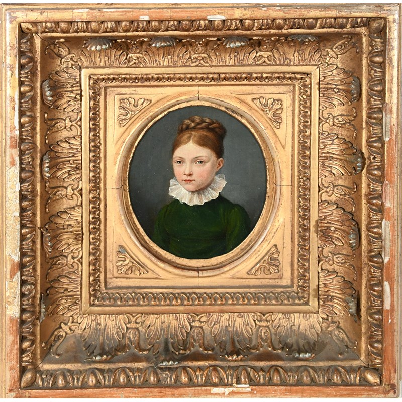 On canvas laid on board, oval, in a rectangular giltwood frame