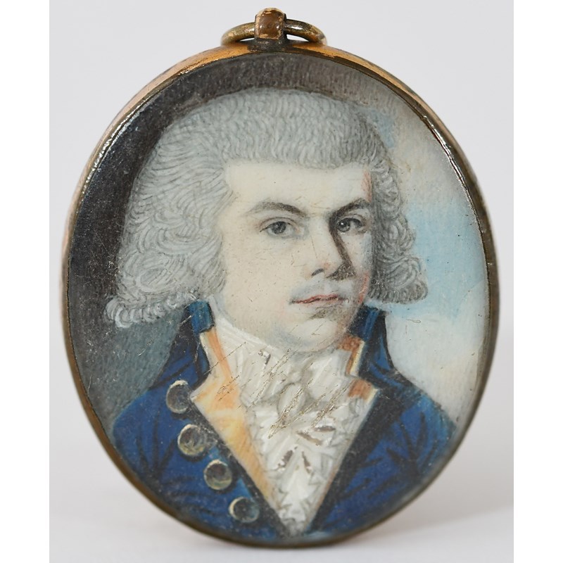 Portrait miniature of a gentleman wearing a blue coat and powdered wig