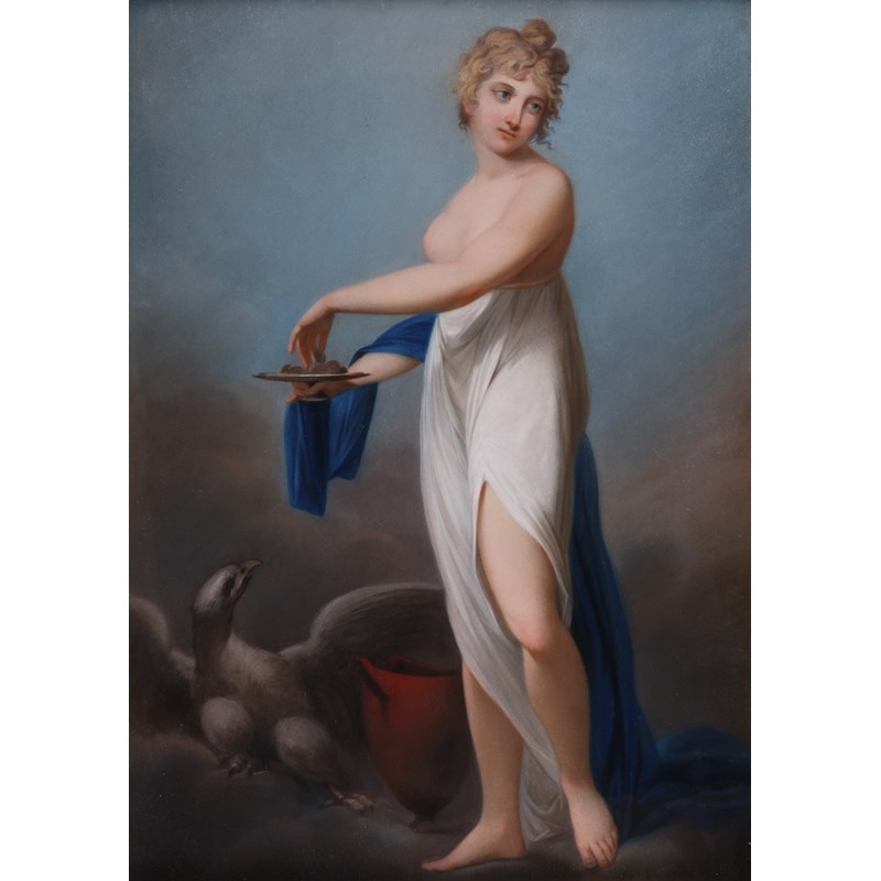German School 18th Century Classical figures with white eagles and peacocks A pair