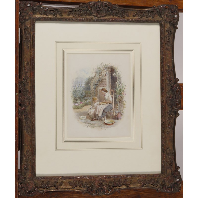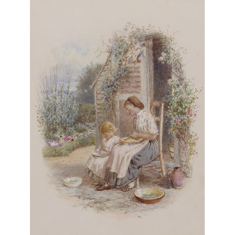 Myles Birket Foster R.W.S. (1825-1899) Shelling Peas Signed with initials indistinctly...