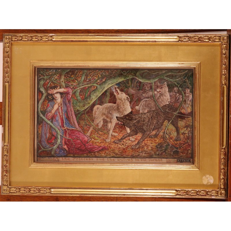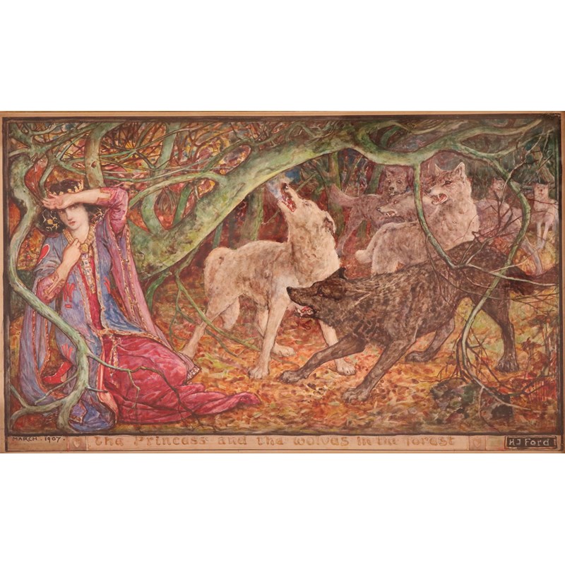 Henry Justice Ford (1860-1941) The princess and the wolves in the forest Signed