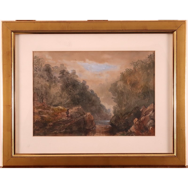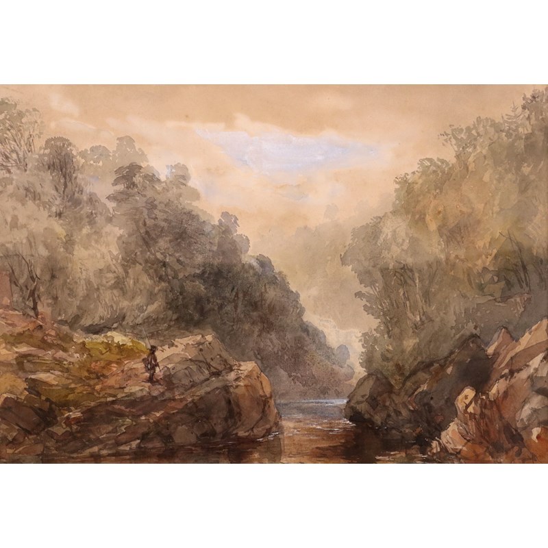 David Hall McKewan (1816/7-1873) Fisherman in a river landscape Watercolour 23.5 x 34cm; 9¼ x...