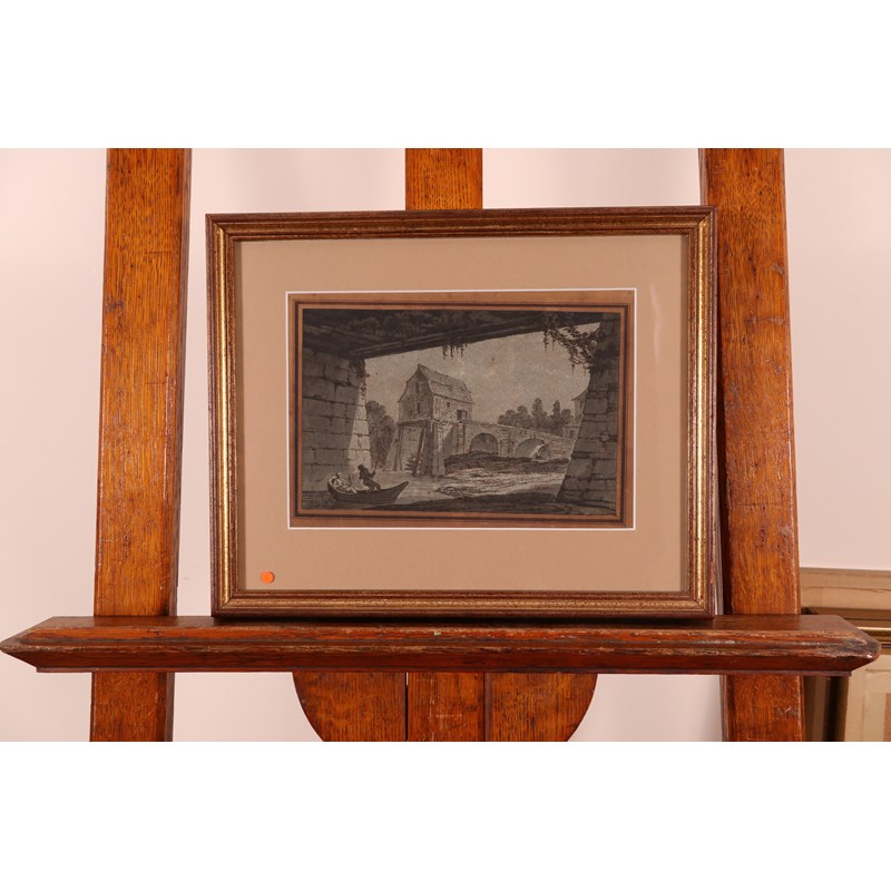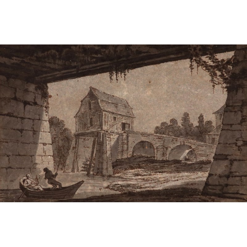 Attributed to Antoine Laurent Castellan (French 1772-1838) View of a river mill and bridge Pen