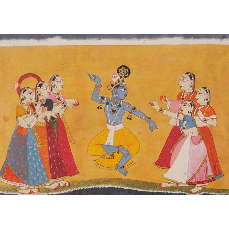 With a further watercolour Indian Mankot School of Krishna dancing with the Gopis 15 x 21cm; 6 x 8¼in (2)