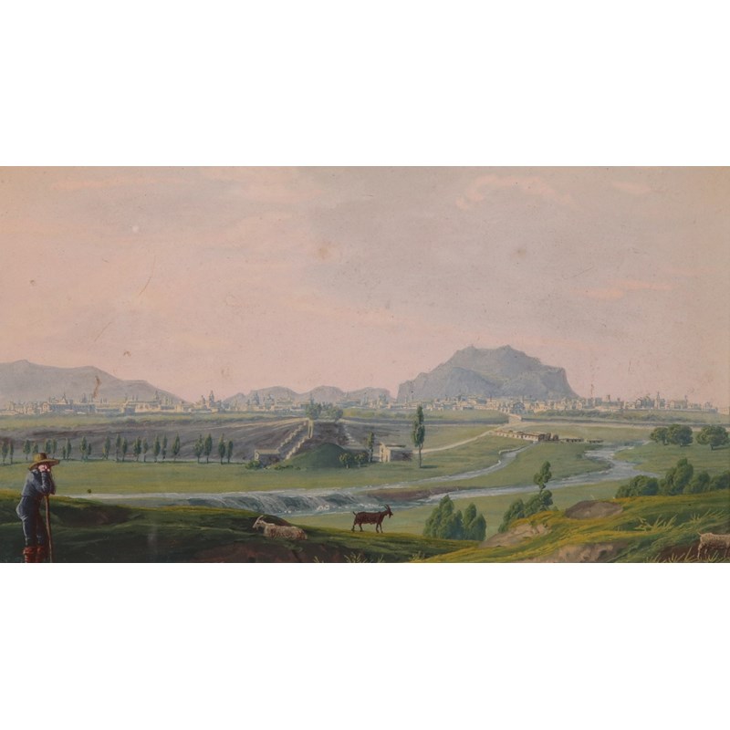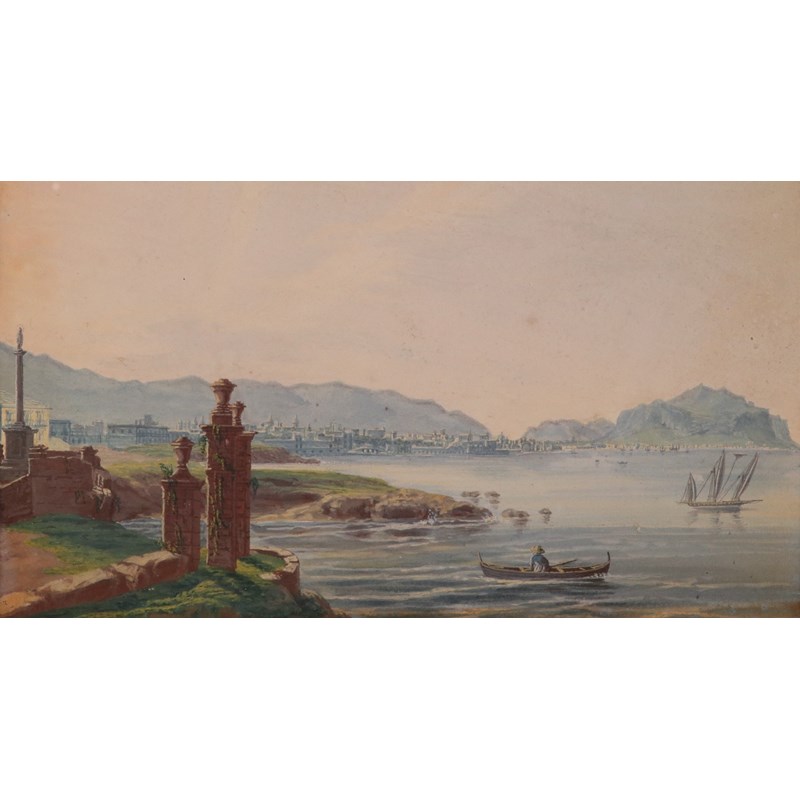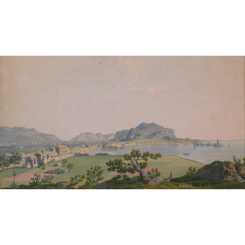 The Temple at Segesta with the Agora in the distance; The City and Port of Catania with Mount Etna beyond; Palermo from the Sea; Palermo and Mount Pelegrino from the coast; Palermo with Mount Pelegrino beyond, the river Oreto in the foreground; Palermo from Mount Pelegrino with Bagheria beyond; Valle dei Templi at Agrigento, with Temple of Concordia and Temple of Ercole from Temple Giunone; Figures with an Atlas in foreground and town of Villaseta in the far left distance; Palermo and Mount Pelegrino from Bagheria