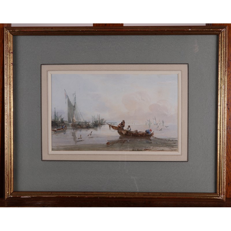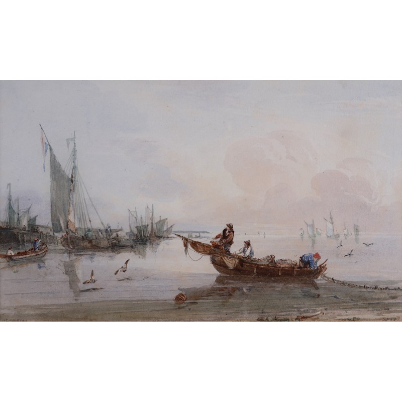 Samuel Owen (1768-1857) Fishermen with lobster pots on the coast Inscribed indistinctly lower...