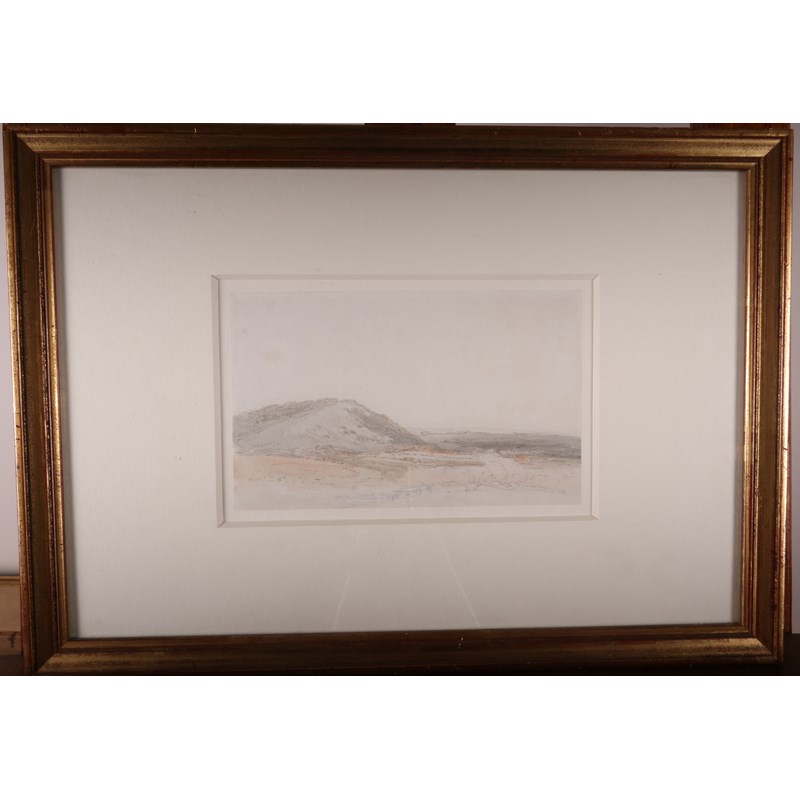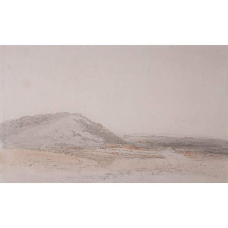 This sketch by Turner relates closely to the larger view which is in the Victoria and Albert Museum, but from a slightly more distant perspective. Turner visited Box Hill around 1796 and there is another view, from a similar angle to this, now in the National Gallery of Canada, Ottawa. Topographically it is very similar, but lacking the foreground details of trees and shrubbery in the Canada work, which indicates that this may have been an initial study.