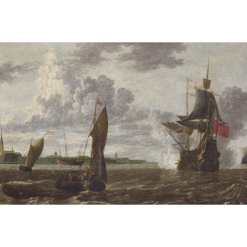 Circle of Willem Hermansz. van Diest Shipping off the Dutch coast Oil on canvas 53 x 78.5cm; 21 x...