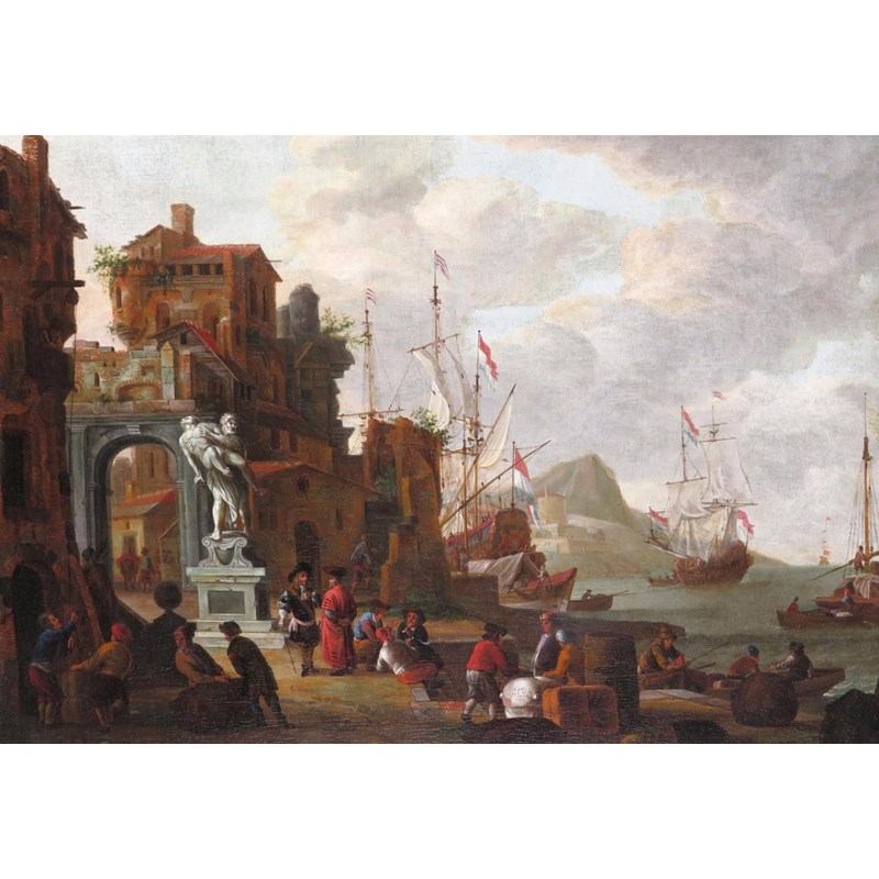 Attributed to Adriaen van der Cabel (c.1631-1705) Merchants in a busy Dutch port Oil on canvas 60...