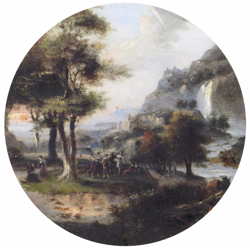 Continental School early 19th Century Figures in an Italianate landscape Signed indistinctly and...
