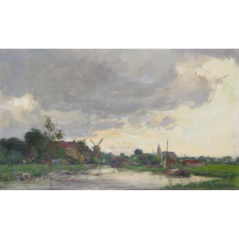 Edward Aubrey Hunt RBA (1855-1922) River landscape Signed Oil on board 29 x 48cm; 11½ x 19in