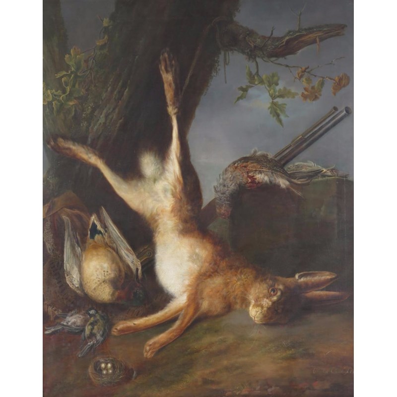 Charles Antoine Clevenbergh (Flemish 1791-1857) A hare and other dead game near a tree Signed and...