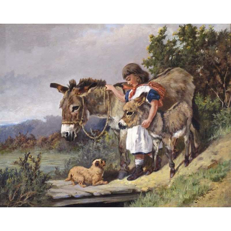 Arthur Batt (1846-1911) A girl with donkeys and a dog Signed and dated 81 Oil on canvas 30.5 x...