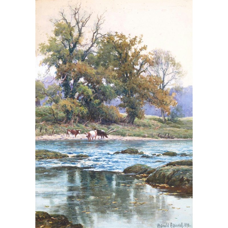 Reginald Aspinwall (1858-1921) Cattle watering in a river landscape Signed and dated 1898...