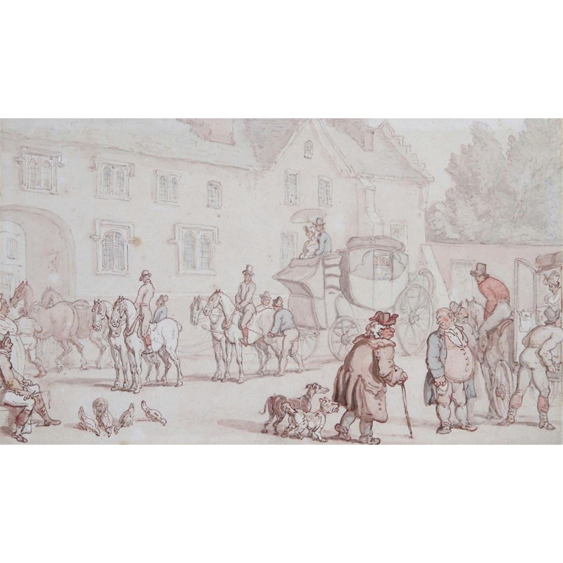 Thomas Rowlandson (1756-1827) Outside a West Country Coaching Inn Pen with coloured ink and...