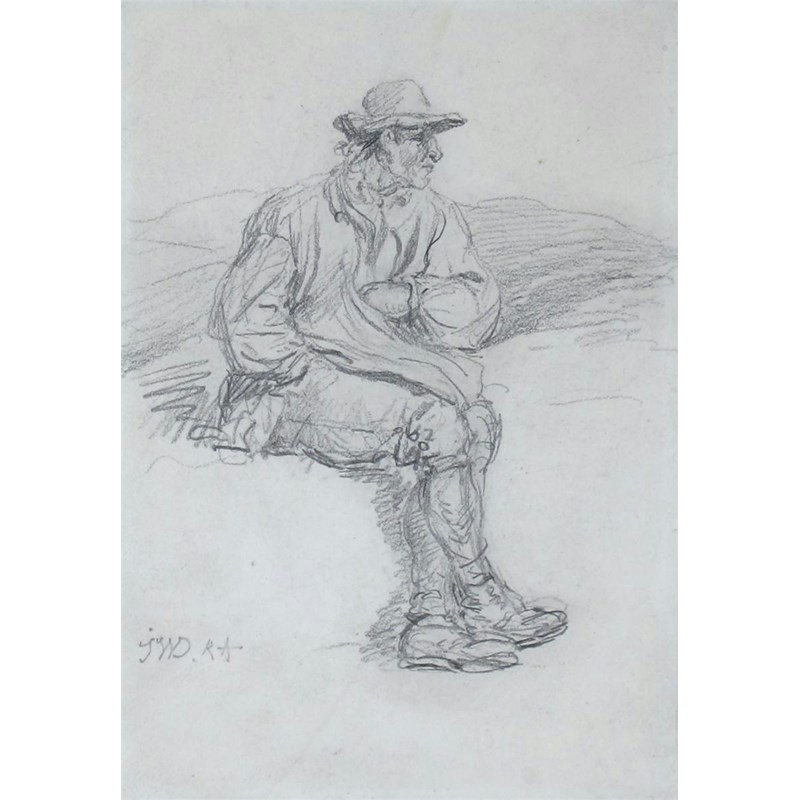 James Ward R.A. (1769-1859) Study of a farm worker resting Signed with initials Pencil 18 x...