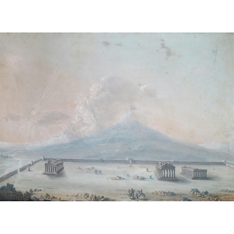 Neapolitan School late 18th Century View of Paestum with the Temples of Ceres and Neptune and the...