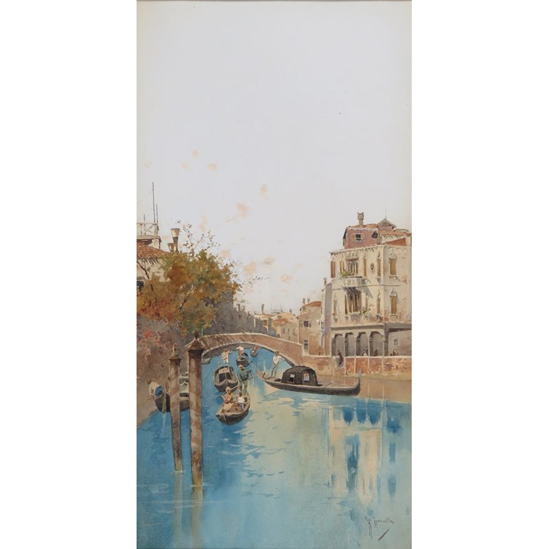 Raffaele Mainella (Italian 1858-1907) Gondolas on a busy backwater
