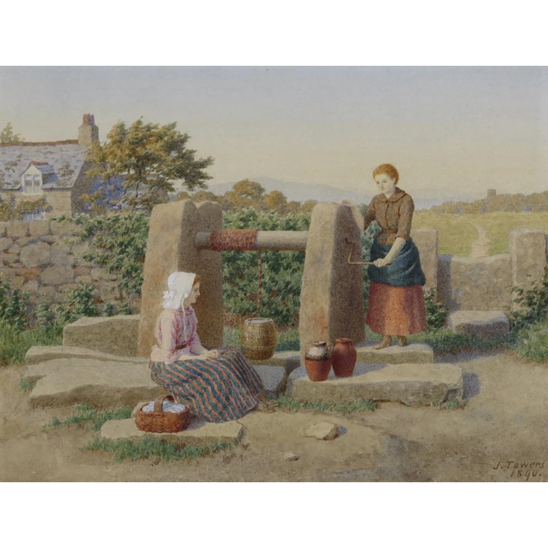 James Towers (1852-c.1934) Two women at a well Signed and dated 1890 Watercolour 18.5 x 24cm; 7¼...