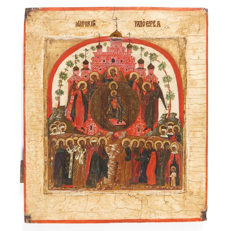 Russian School 18/19th Century Icon of 'All Creation Rejoices' Painted on panel 30.5 x 26cm; 12 x...