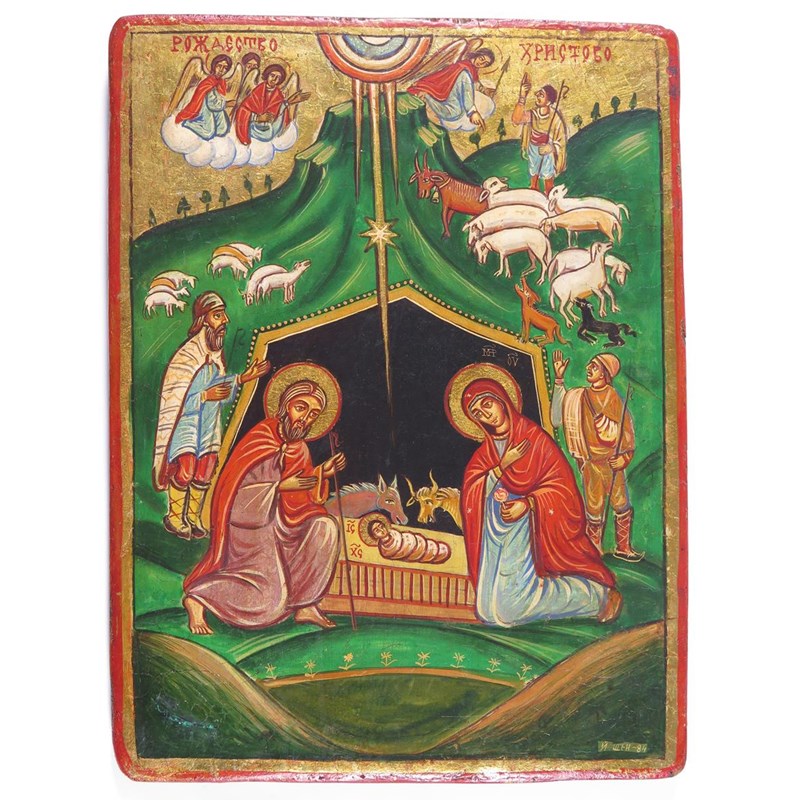 Jordan Shentov (Bulgarian 20th Century) Icon of The Nativity Painted and gilded on panel 43 x...