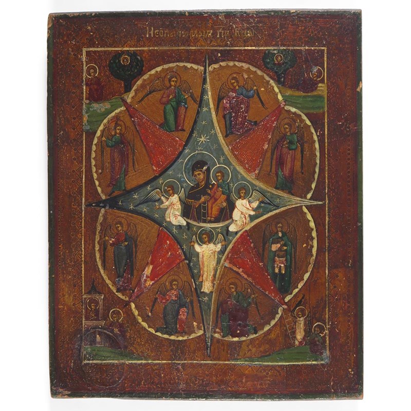 Russian School 19th Century Icon of the Mother of God of the Burning Bush Painted on panel 35.5 x...