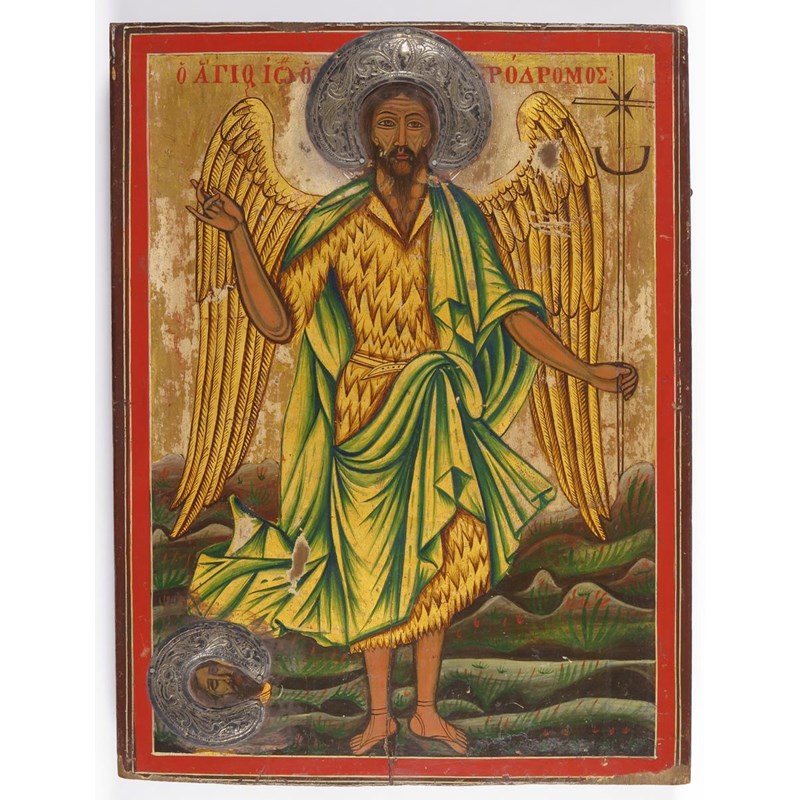 Russian School 19th Century Icon of St. John the Baptist Prodromos Painted and gilded on panel...