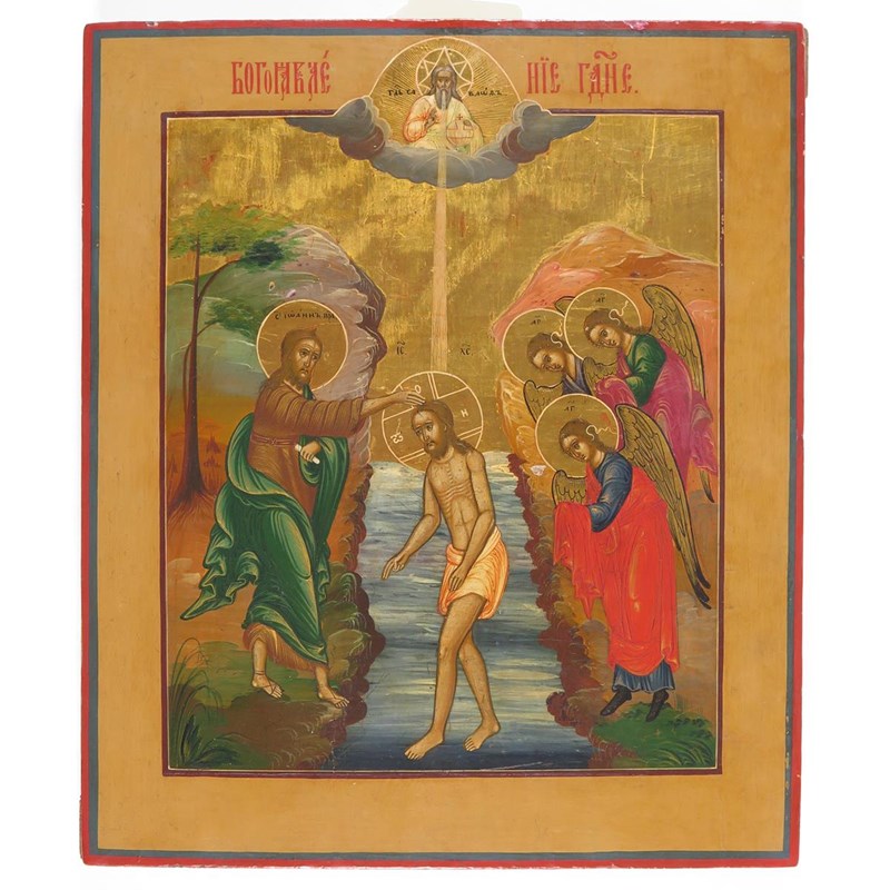 Russian School 19th Century Icon of The Baptism of Christ Painted and gilded on panel 35.5 x...