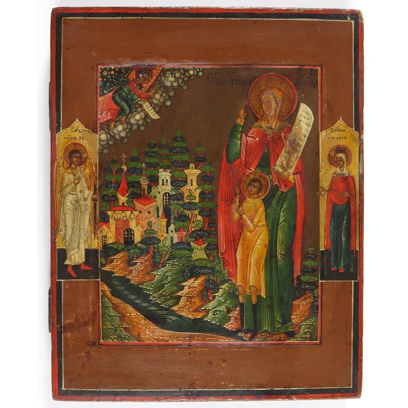 Russian Orthodox School 19th Century Icon of the Virgin and Child by a river