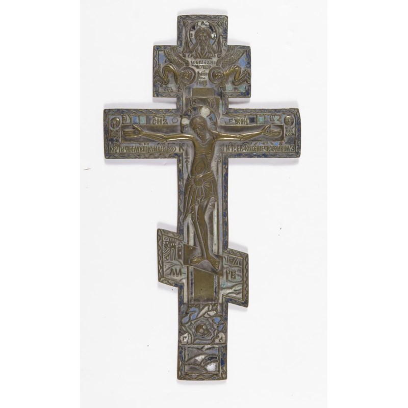 Russian School 19th Century The Crucifixion (Pomorian Old Believer) Cast copper alloy inset with...