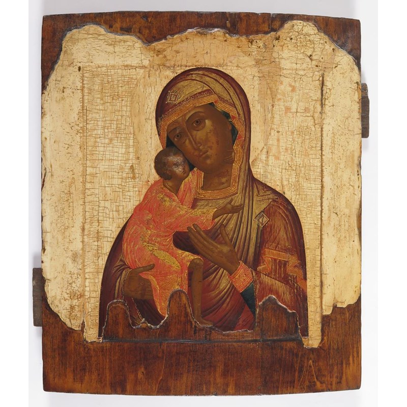 Russian School 18th Century Icon of The Mother of God of Vladimir Painted and gilded on panel 31...