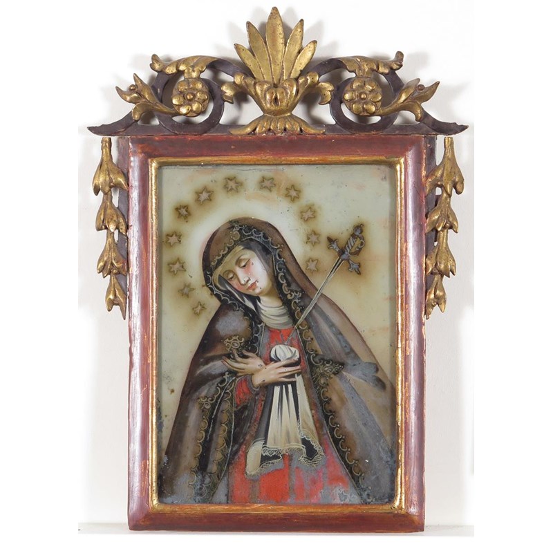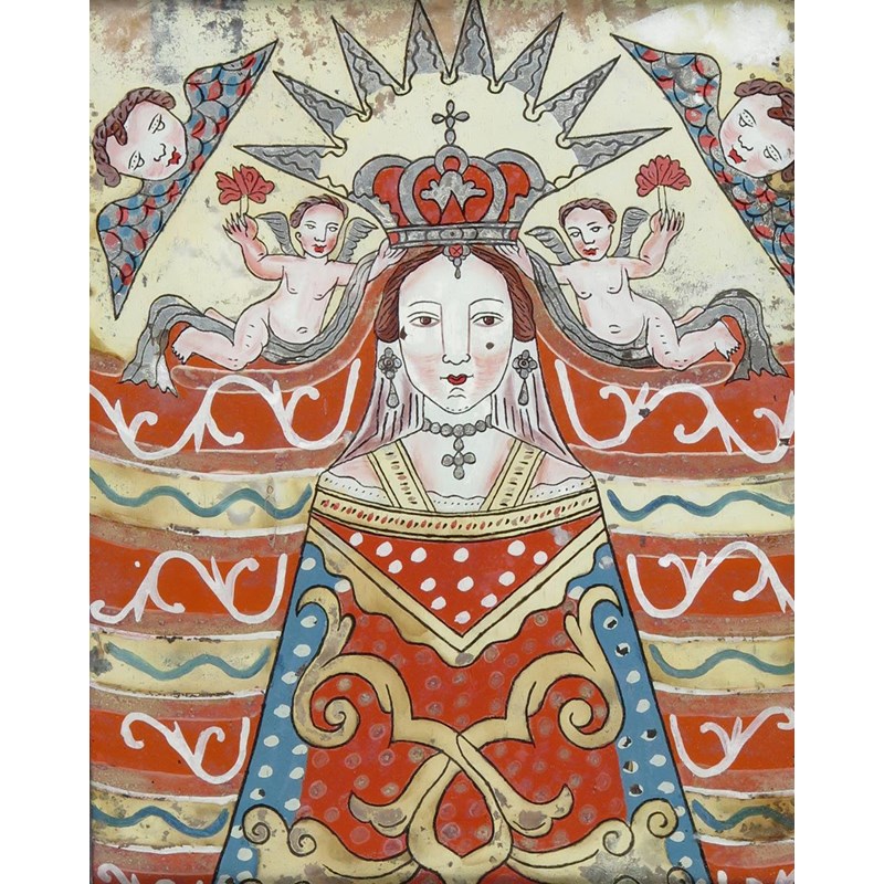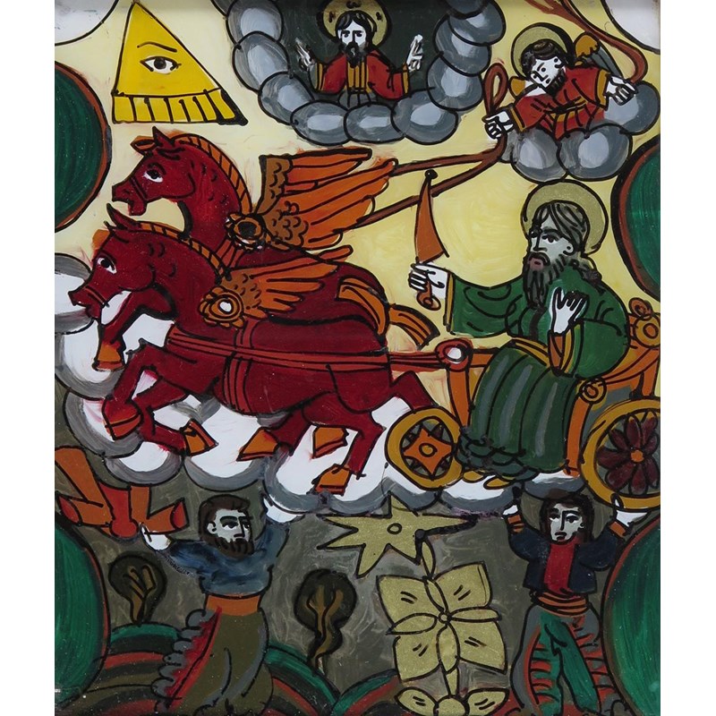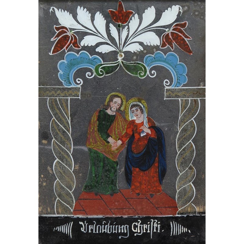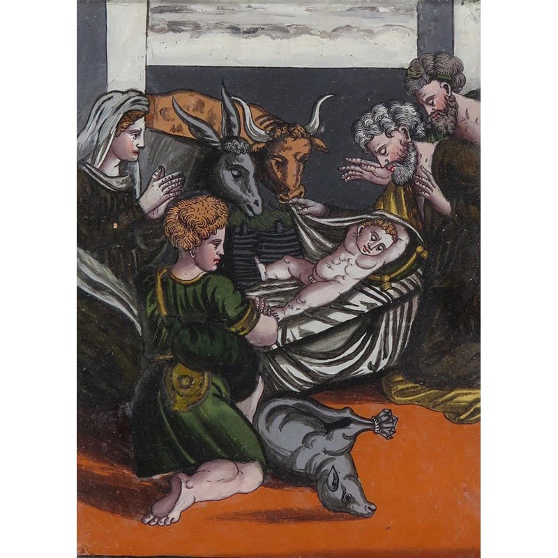 Glass painting with 5 other reverse glass prints and paintings of religious subjects
