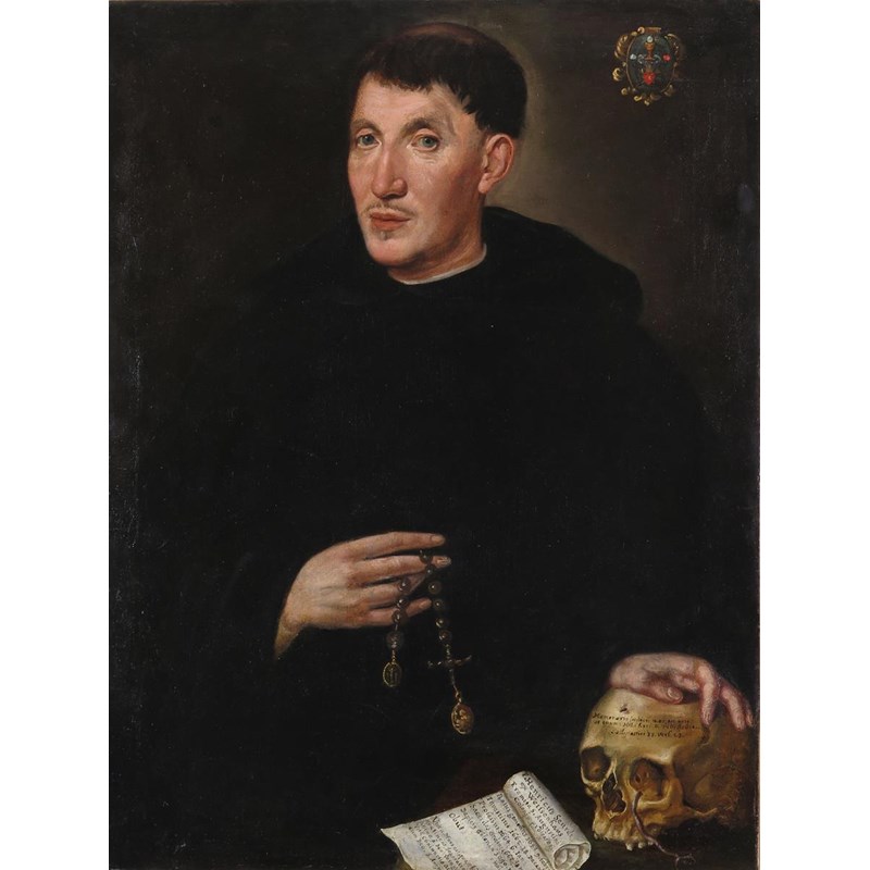 Portrait of an Augustinian monk with a skull, a rosary and a scroll