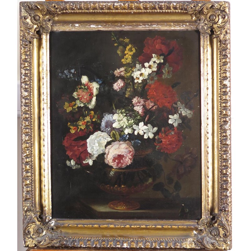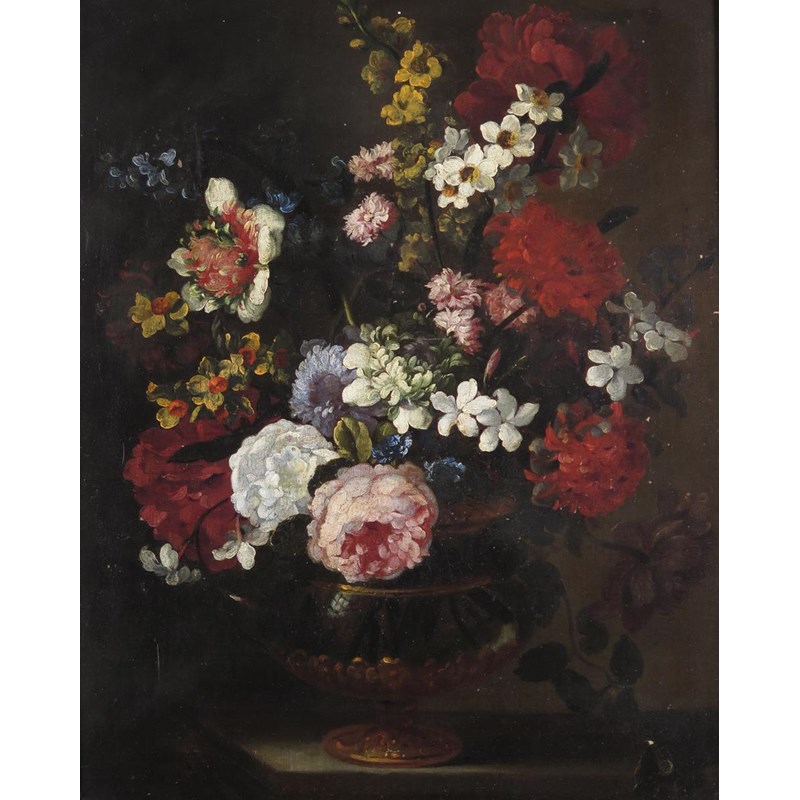 Dutch School 18th Century Still life of flowers in an urn Oil on canvas 56 x 46cm; 22 x 18in