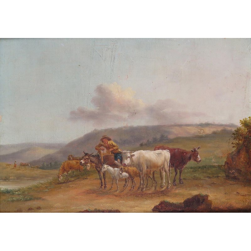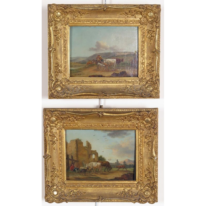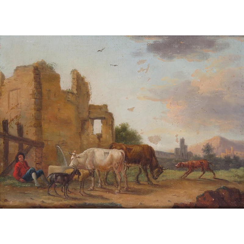 Attributed to Johann Friedrich Steinkopf (1737-1825) Rustic with livestock by a ruin and in a...