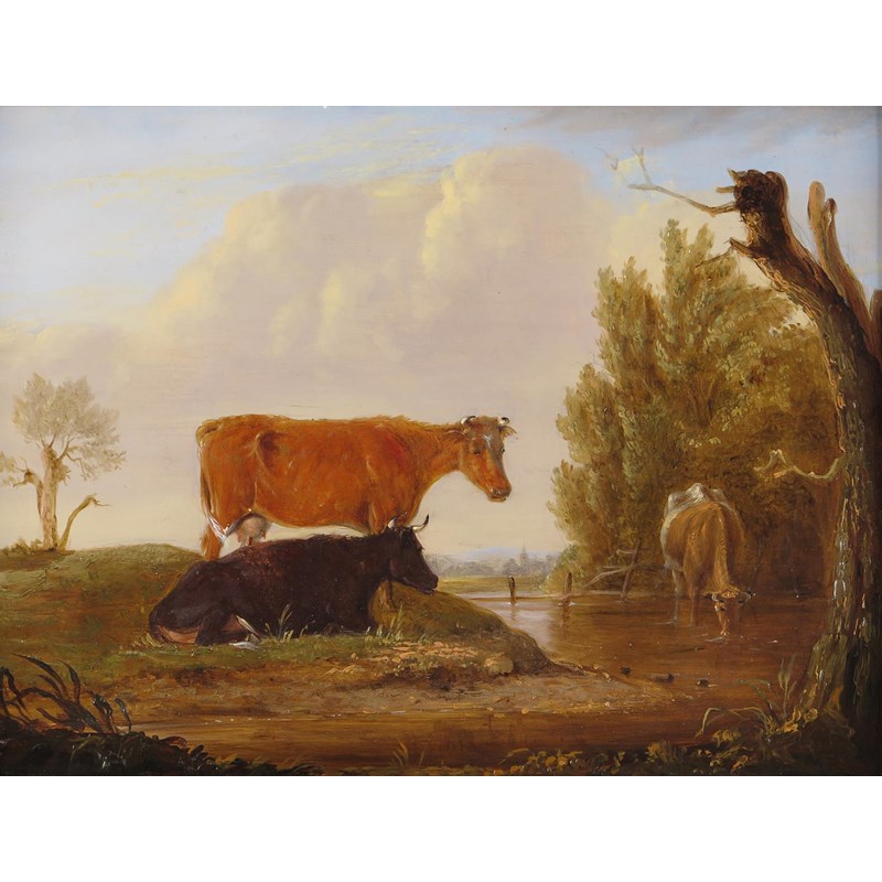 Edmund Bristow (1787-1876) Cattle by a river Signed and dated 1831 (below frame) Oil on panel 24...