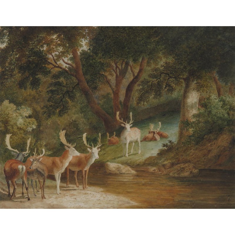 Robert Hills (1769-1844) Deer in a clearing by a river Watercolour 38 x 49cm; 15 x 19¼in...