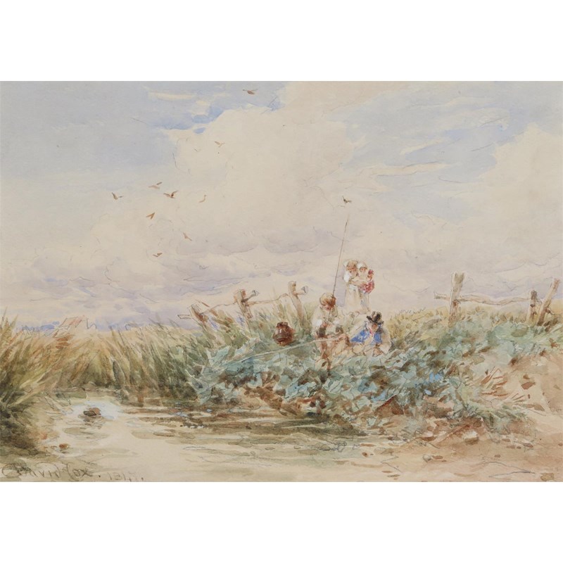 David Cox Snr. O.W.S. (1783-1859) A family fishing Signed and dated 1847 Watercolour 15 x 21cm; 6...