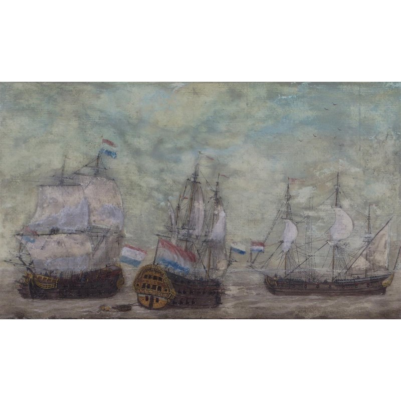 Dutch School 17th Century Warships at sea Pencil and watercolour heightened with white 12.25 x...