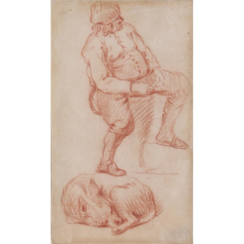 Dutch School 18th Century Study of a man and a sleeping dog Sanguine on paper 15.5 x 9cm; 6 x 3½in